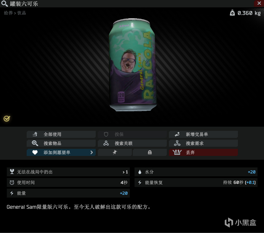 在旅行包,手提箱,物資配給箱中生成。大媽處用4個冰綠茶兌換