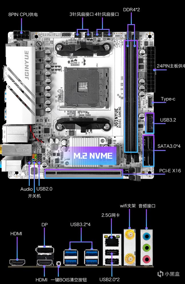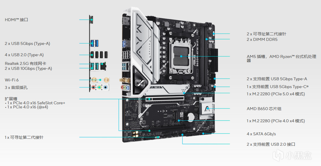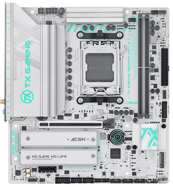 4.华硕B650EM 天选WIFI,一槽位全白主板,8层PCB 3个M2固态扩展位,供电带到210W左右,目前比冰雕更值得购买。供电210W,带到9900X。