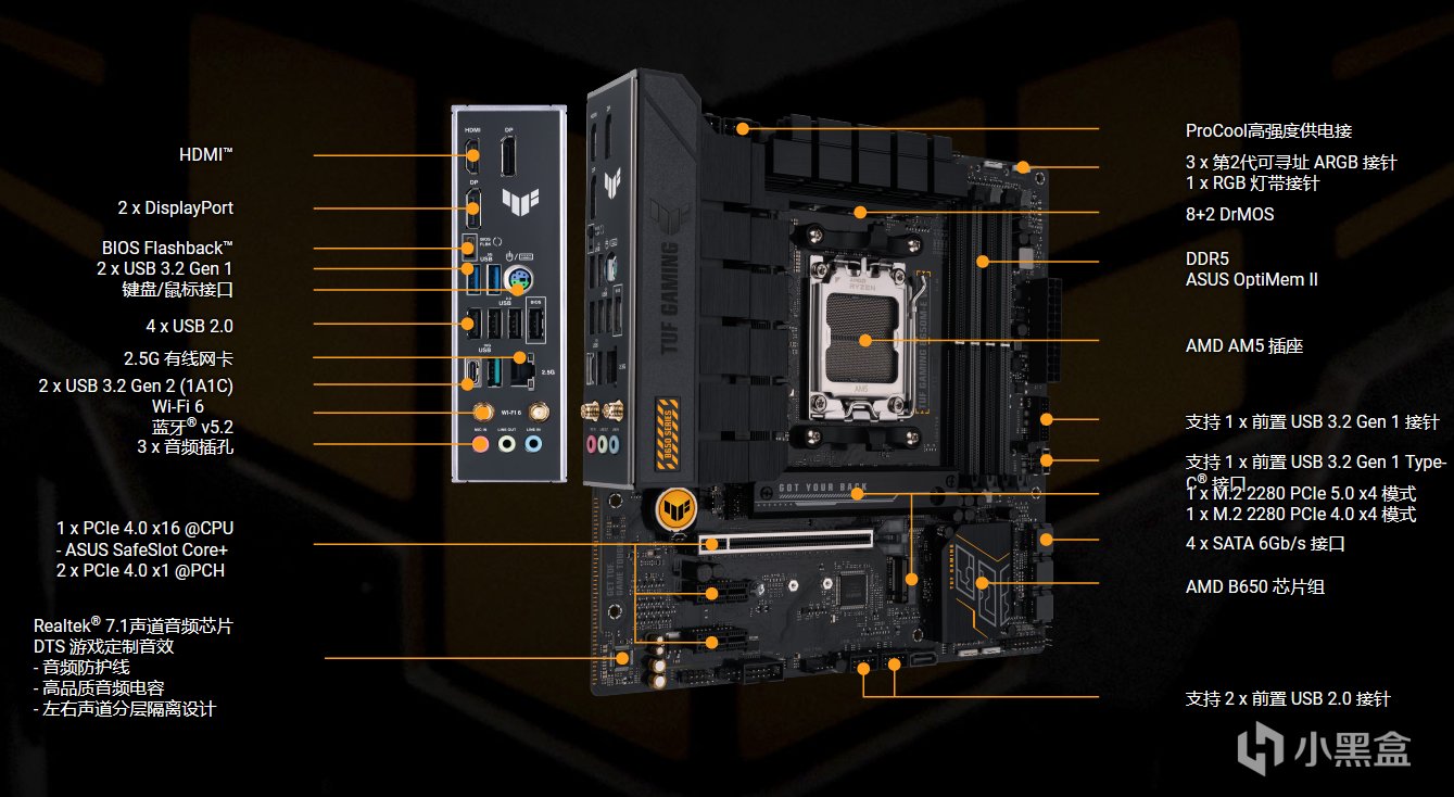 2.华硕B650M-E-WIFI(轻炮手)供电比微星强,可带到290W,在部分接口和供电相比重炮手有缩水,但实际使用上是没明显差距的。可带9950X。
