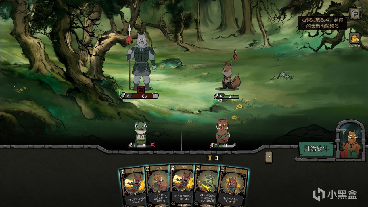 在冒险的过程中不停地在3选1事件中做出选择,不同的选择会带来不同的收益和结局;对战中,玩家会使用卡组中的卡牌进行战斗,分为法力值和行动力,以回合制进行对战。而通过不断地选择进行剧情的推进!见证浪浪山小妖的精彩故事!
