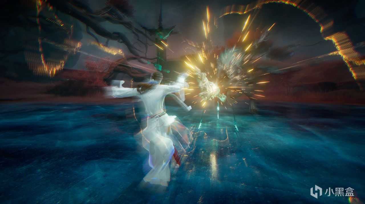 在最后的BOSS战中,还出现了“拼刀”的情况。BOSS放出的技能在空中还未击中玩家时,玩家可以同时释放技能对轰,形成“拼刀”,这无疑也为《代号:逍遥游》战斗增加了可操作性和可玩性。