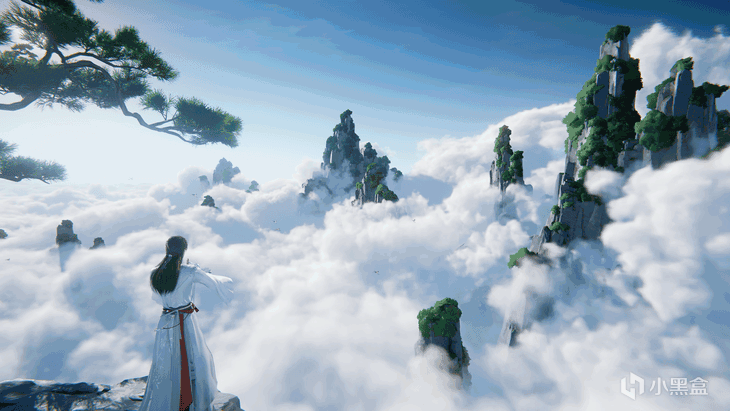 与其他开放世界不同,《代号:逍遥游》的地图来到了天上,用大量的美术资源构建了云海世界,云海中有悬浮的仙岛,仙岛上景观则更贴近现实,塑造出虚实结合的开放世界。
