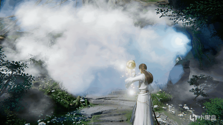 云海世界中的云并非只做装饰使用,更多的是作为开放世界探索的核心。在PV中呈现出了这样的画面:主角扔出一个葫芦吸走云雾,可以探索的仙洞入口便显露出来。