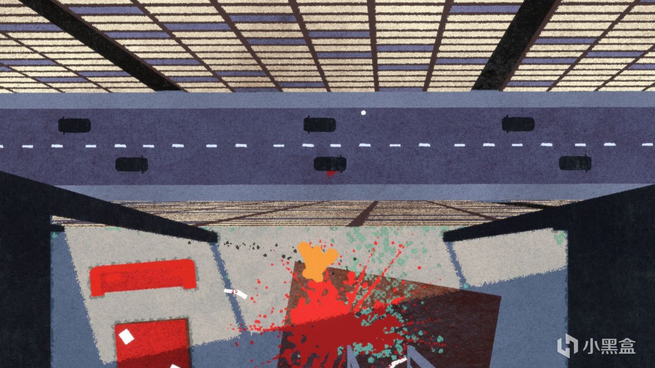 这款游戏的视觉风格极为独特,采用了极简主义的色块和强烈的色彩对比,营造出一种复古海报般的质感。浓烈且粗犷的非写实画风也是APE OUT的一大特色,画面上的一切都像是随意甩上去的水彩,充满狂野的张力。