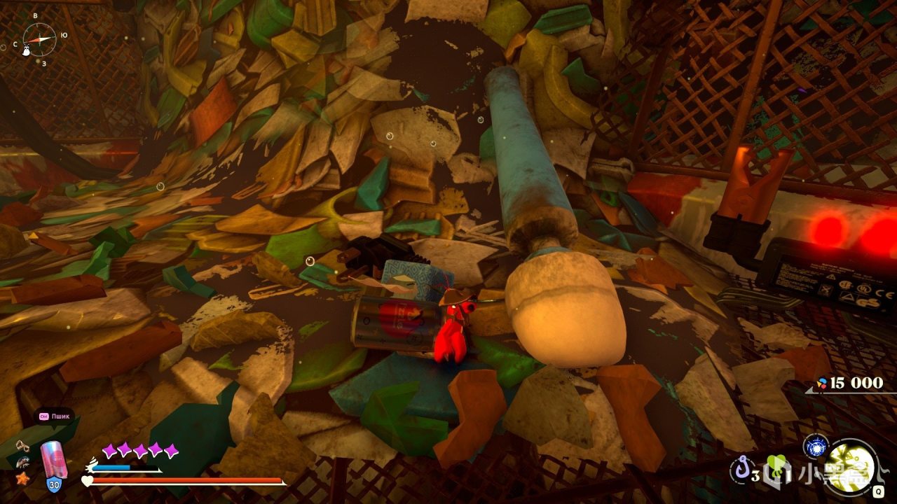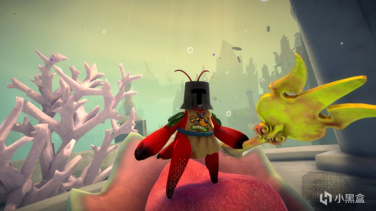 游戏最大的创新和乐趣点在于其核心的壳机制。海洋里散落着各种物品可以被当作主角寄居蟹的临时壳,从易拉罐、瓶盖到网球。壳有不同的耐久度和技能,这为游戏的战斗和探索增添了策略性和趣味性,玩家需要根据不同的敌人和环境,灵活更换自己的壳。