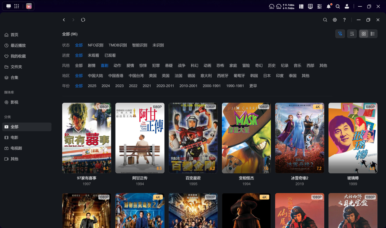 構建影視中心前可按教程選擇指定媒體文件夾,設置分類,開啓TMDB智能刮削,漂亮的海報牆就出來了。