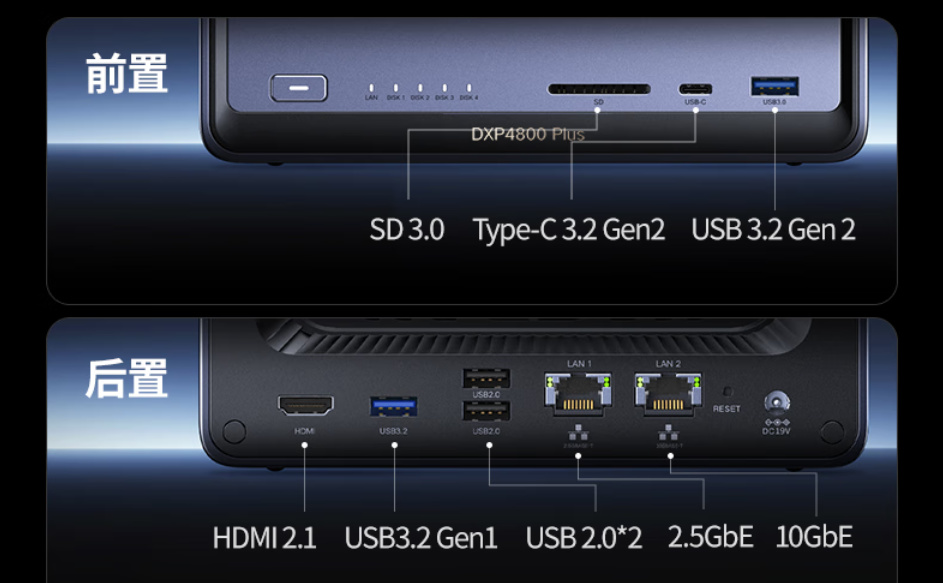 DXP4800Plus,最大亮點在於新增一個LAN網口,組成2.5G+10G網口。
