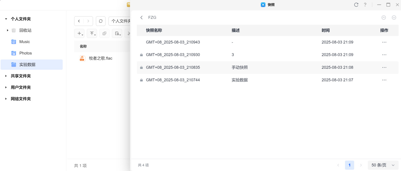 此外,UGOS Pro最近更新了快照功能。其採用增量快照和寫時拷貝技術,能夠以儘量少地佔用存儲空間的方式記錄數據在某個特定時間點(如拍攝快照時)的完整狀態。