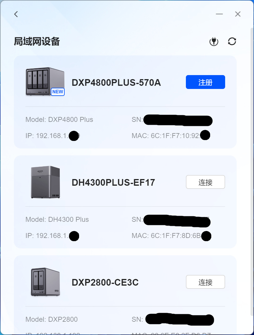在同一網絡下,直接通過綠聯雲電腦/手機端,或者網頁端檢索設備,不出意外即可發現新設備。如果在校園網環境下,則需要考慮整一個專門的路由器構建內網,畢竟校園網爲方便管理有AP隔離和登錄管理。