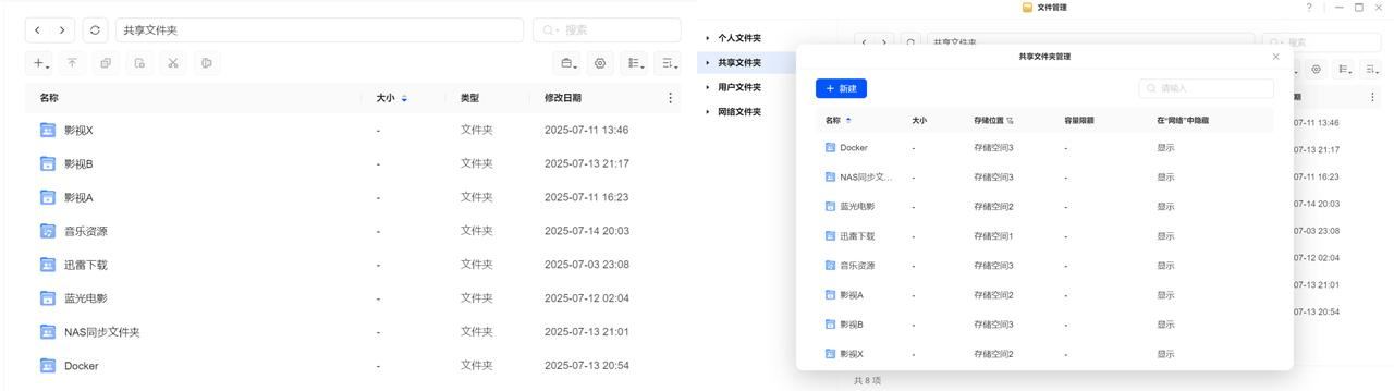 作爲NAS系統的UGOS Pro文件管理系統與常規電腦略有不同,它更強調按用戶和存儲池進行管理。相當於Windows多用戶模式,大家可以訪問共享文件夾,也有自己的私人文件夾可分配。