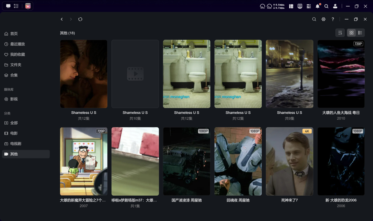 當影片攢的足夠多時,分類列表瀏覽影片就蠻有儀式感,點進具體影片還可見詳細的介紹頁並且支持手動識別。