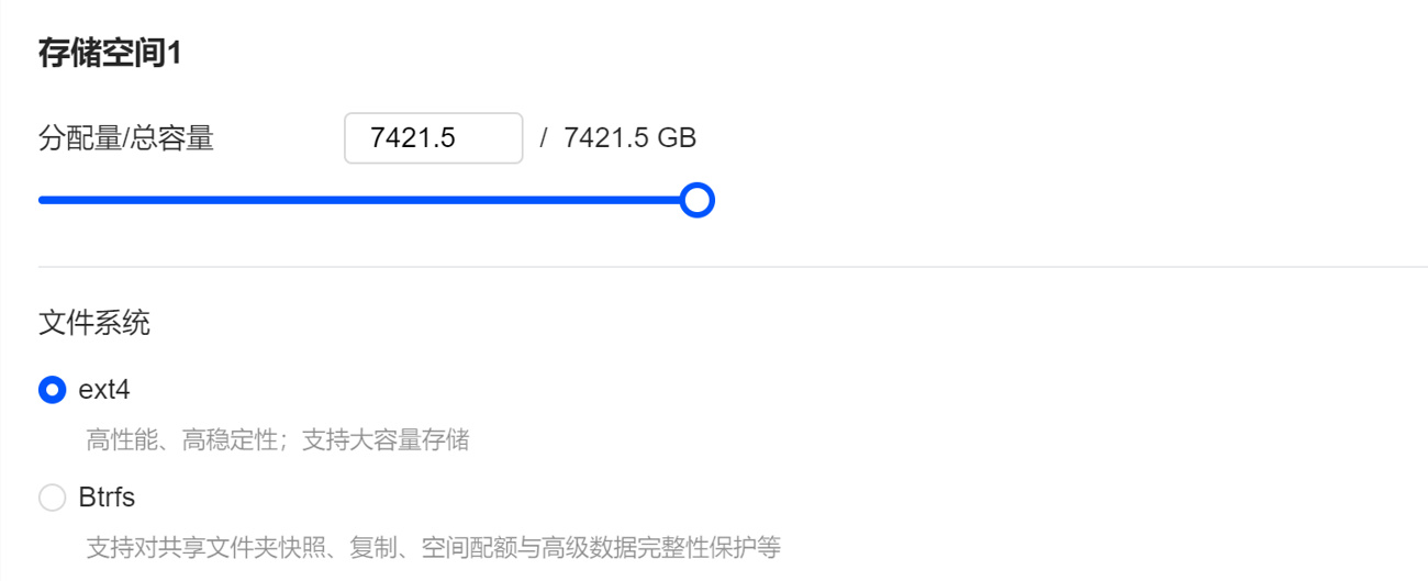 個人建議數據盤選擇“Btrfs”文件格式,這樣配合快照功能,重要文件備份可以按時間節點建立快照,後面溯源方便得多,不用一次次建立副本了!