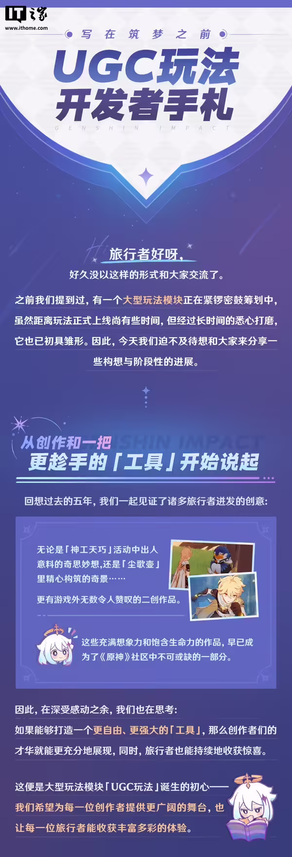 ● 《原神》官方宣布UGC玩法将于年内上线。