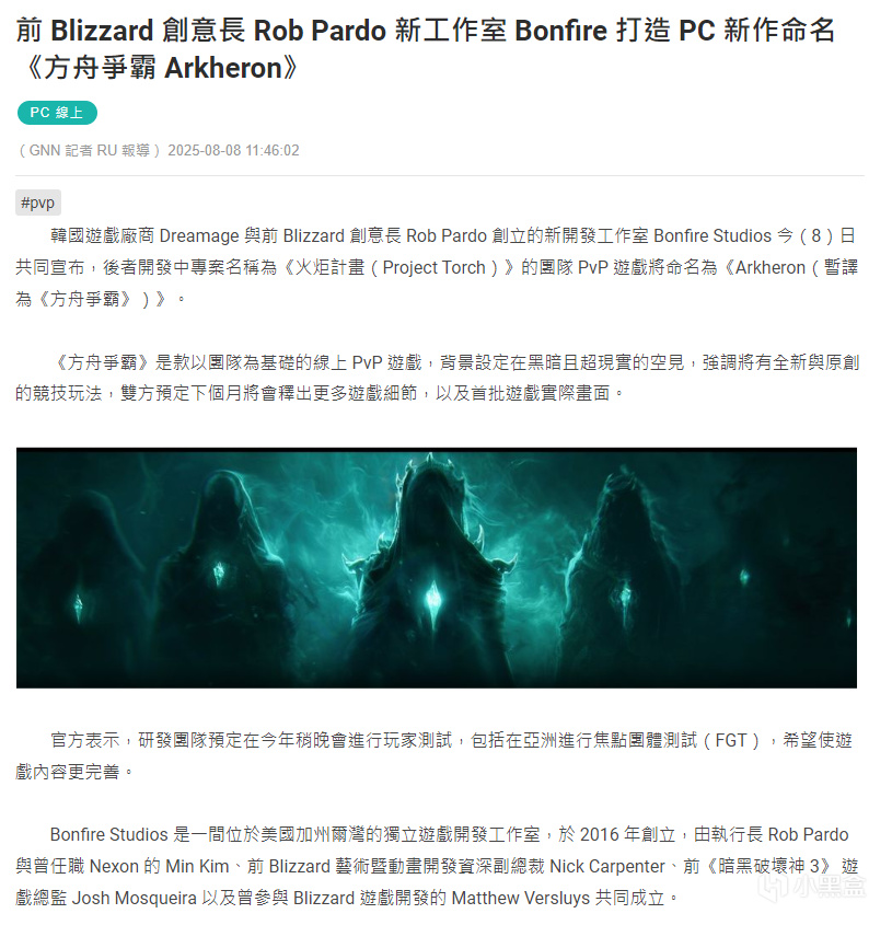 1. 韩国游戏厂商Dreamage与前暴雪娱乐首席内容官Rob Pardo创立的工作室Bonfire Studios今日宣布,其团队竞技PvP游戏《Project Torch》正式定名为《Arkheron》。该作以黑暗超现实空间为背景,主打创新竞技玩法。官方透露将于下个月公布更多游戏细节及首支实机画面,并计划在今年晚些时候开展玩家测试,包括亚洲地区的焦点团体测试。来源:gnn