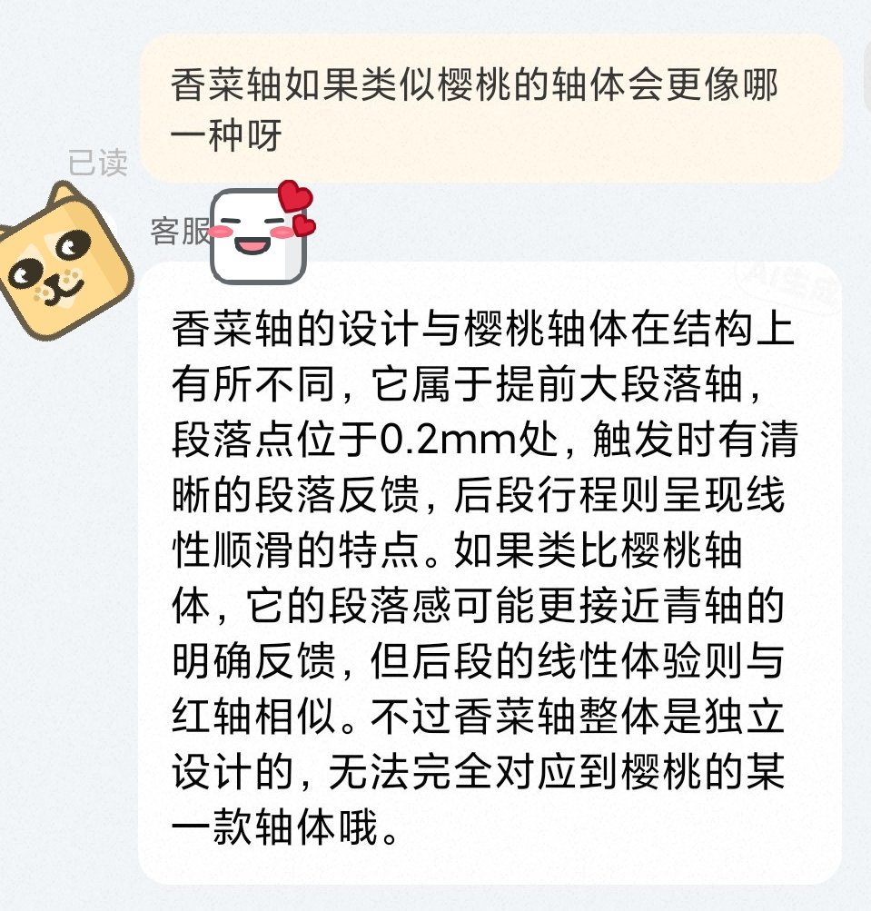 但其實很多軸體還是依據櫻桃的那幾種軸體來設計的,大家如果不太瞭解這個國產軸體的手感的話可以詢問軸體的客服。