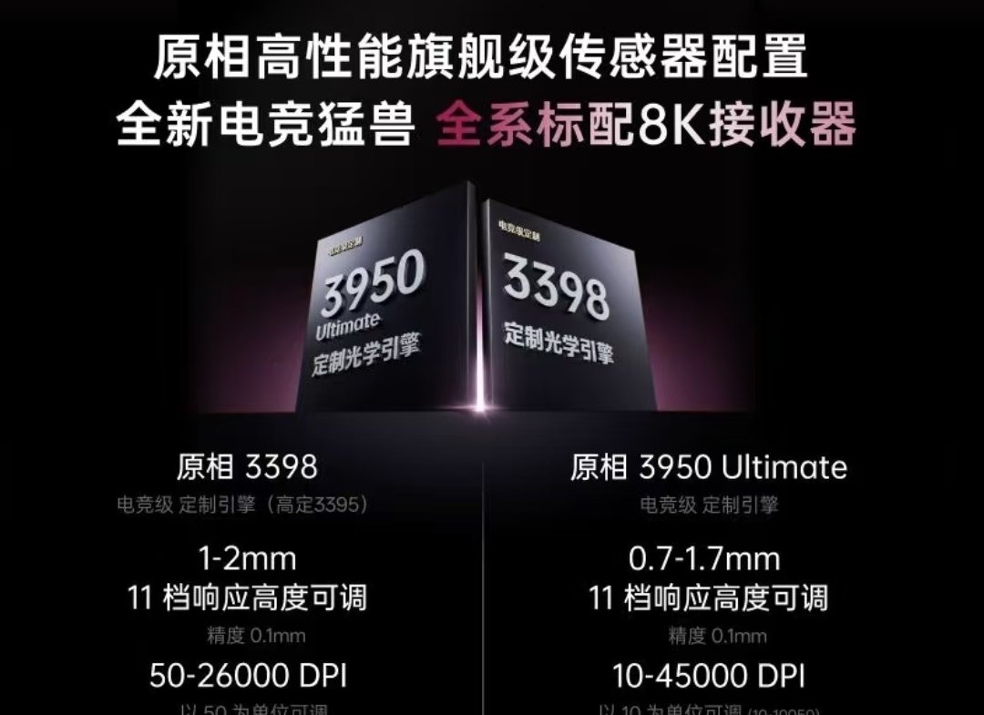 比較高端的像3950傳感器,有着高分辨率和出色的追蹤性能,在快速移動和細微操作時都能精準定位,適合對鼠標操作要求極高的FPS遊戲。但其實傳感器對於鼠標真的是細微差距,百分之99的人感受不出來區別[doge]