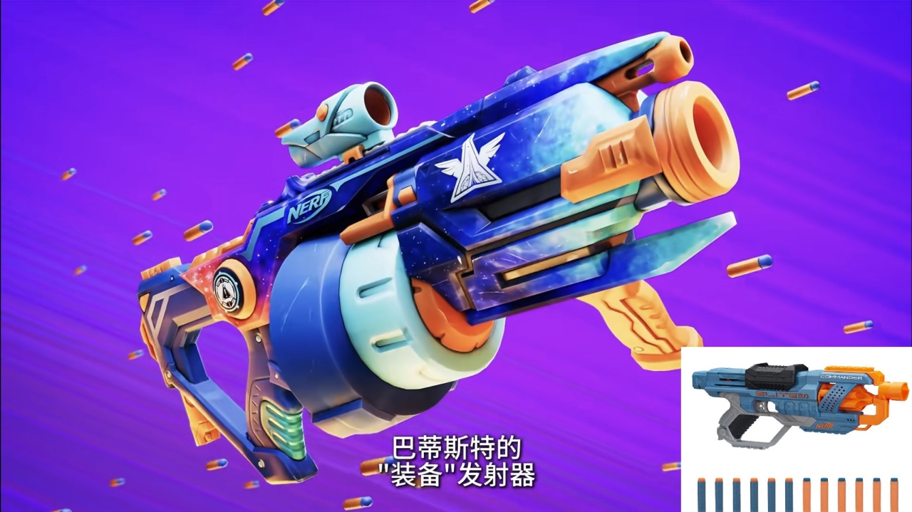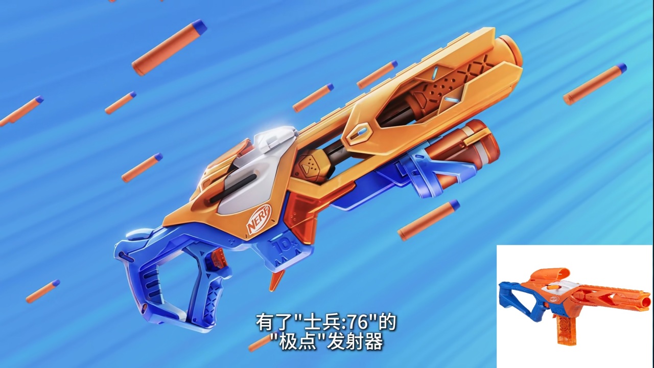 獵空的應該是這款,款型很相似,雙持短槍。重要的是上面都有透明儲彈倉,貼圖如果是這樣一排的,貼成這樣的大家應該也好接受一點。附一下之前nerf聯動ow獵空出的玩具槍