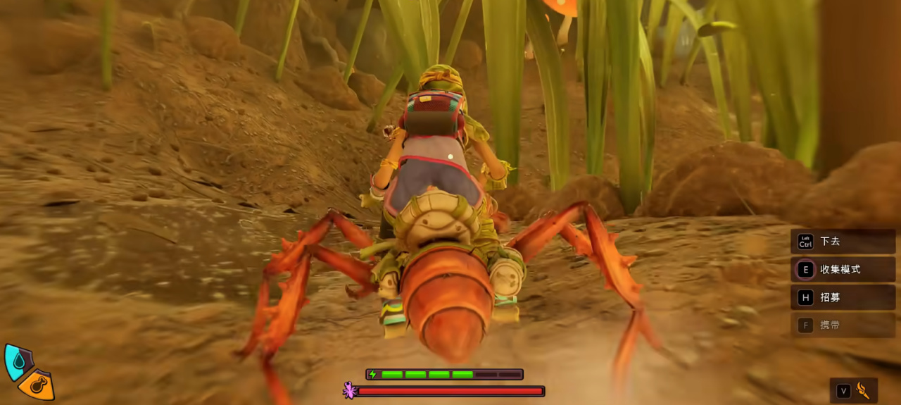 坐骑系统我觉得一定程度上是为了更好的拓展地图,特别是兵蚁,前期跟着主线就能获得,不仅让我们前期的移动速度变得快了很多,而且还有一些特定的地点必须要兵蚁才能到达,可惜的是蜘蛛要到几乎通关才能获得骑乘,而瓢虫则要到后续更新才有。