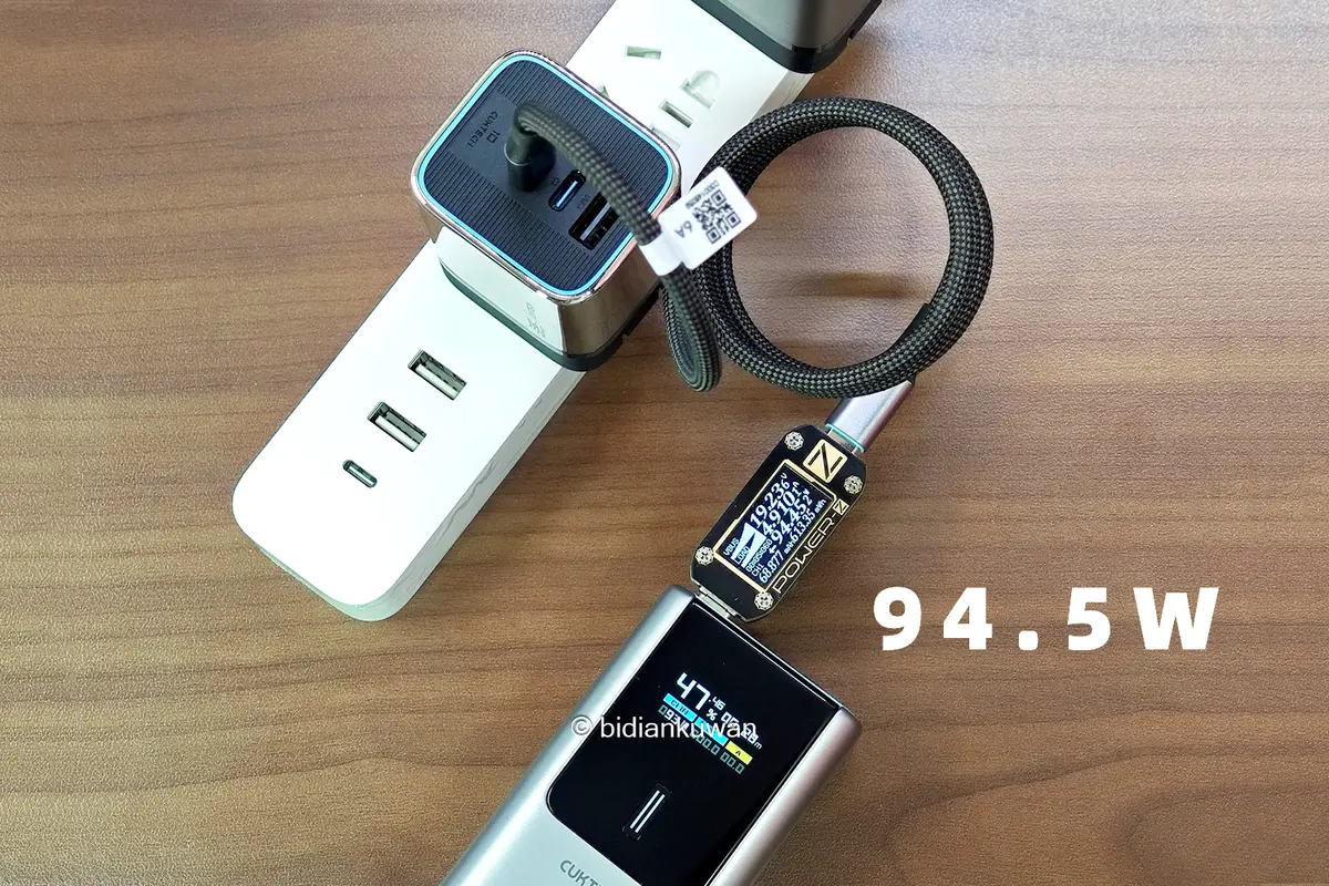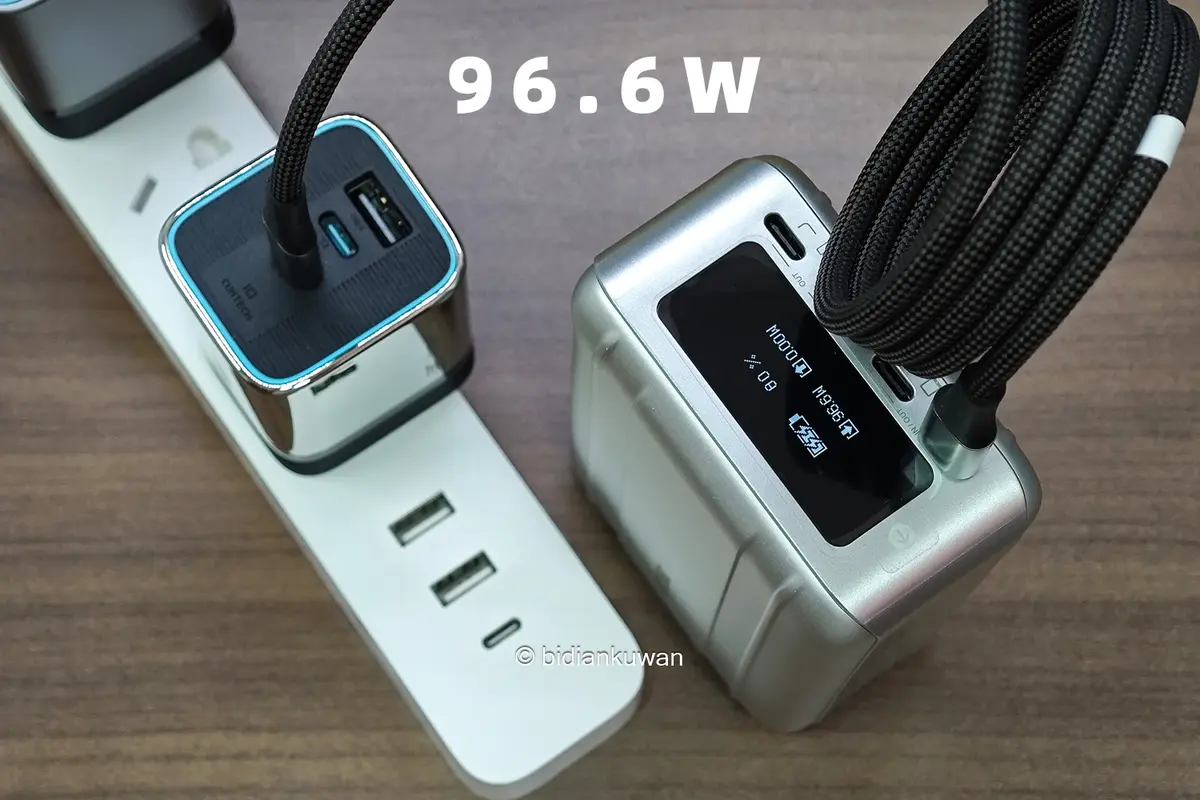 ▼给支持100W双向快充的征拓SuperTank Pro充电,长时间稳定在95~97W。