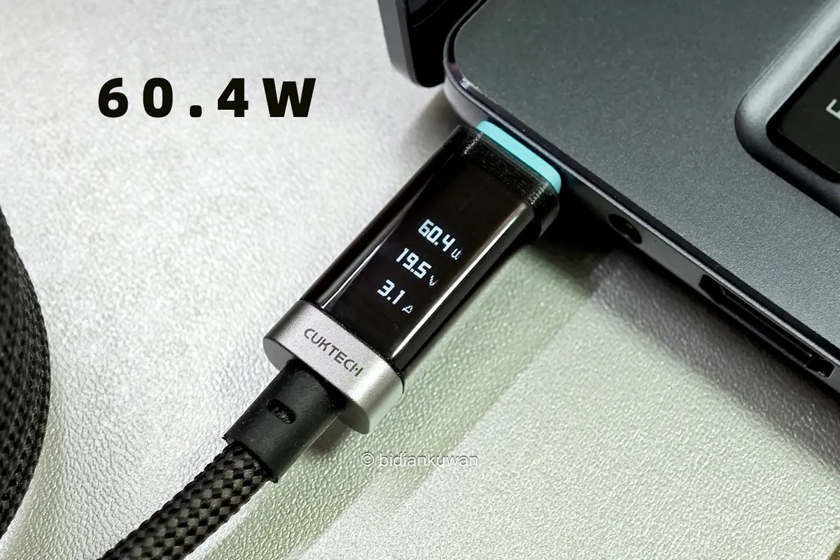 ▲上图是给我的华为MateBook(65W Max)回血,实时充电功率长时间维持在60W左右。