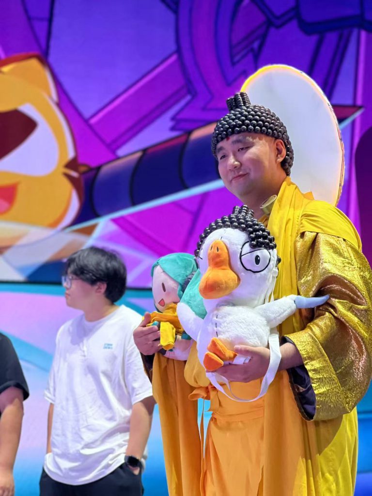 一个更为极致的案例来自雷霆游戏,他们今年没有设立展台,而是让员工穿着旗下游戏《不思议迷宫》的玩偶服,“乱入”各大热门展台进行互动,以极低的成本,成功蹭到了整个CJ的流量,实现了高效的品牌曝光。
