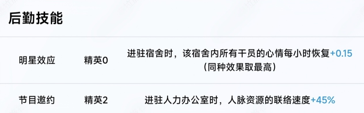 一二天赋均为保人天赋,庇护效果降低干员受到的物法伤害,也就是说提升干员一击线,技能介绍中是友方单位,实测召唤物甚至绝食干员都能套上浮泡(遥退场泡泡依旧存在)