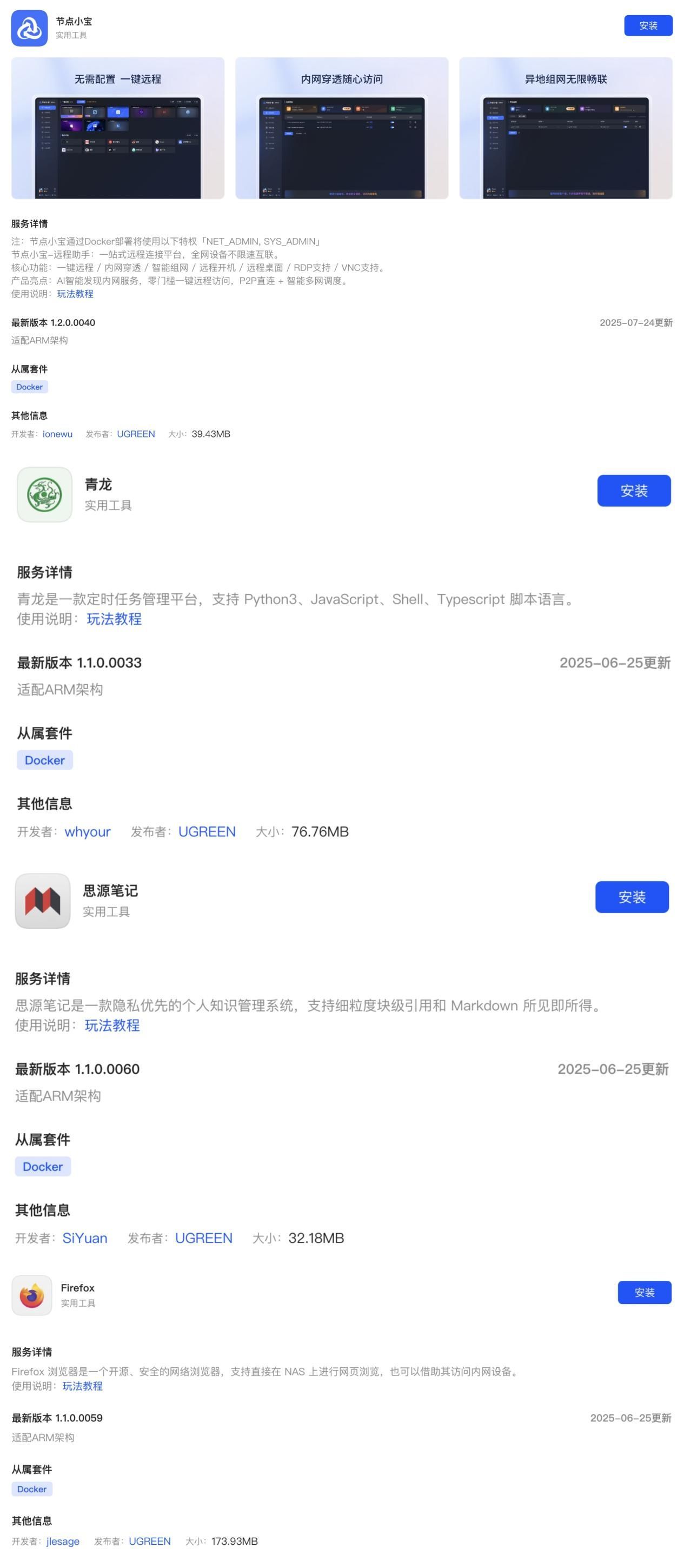 所有第三方应用程序的安装均依赖于Docker。由于ARM架构与x86架构存在差异,这些应用在部署前必须经过适配,以确保在ARM平台上能够正常运行。