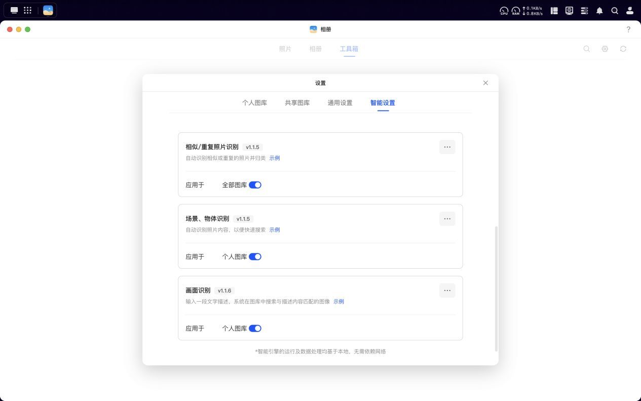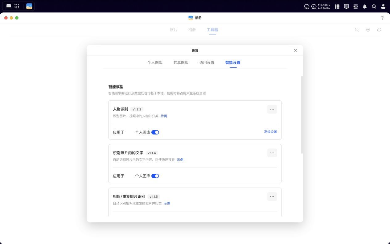在NAS行业中,绿联的UGOS Pro系统可以说是较早一批支持NPU功能调用以实现AI识别的品牌。特别是在相册应用方面,如今已经能够运行本地化的AI模型,这对搭载ARM架构的处理器在NPU性能方面也提出了相应的要求。
