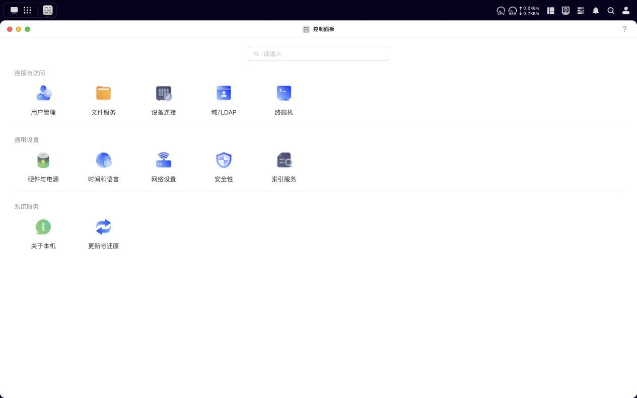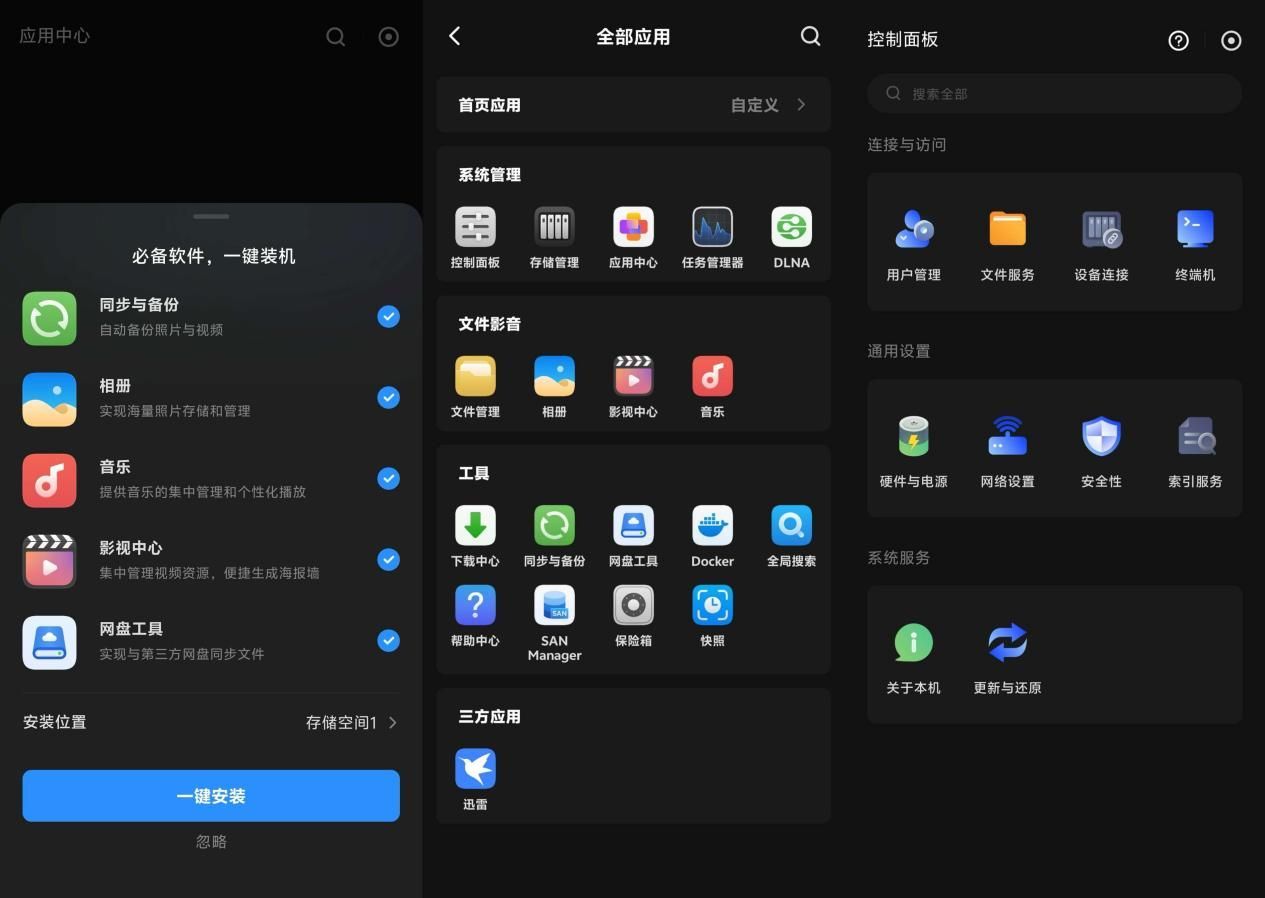 应用中心、全部应用界面以及控制面板的操作设计都非常简洁直观,使用起来十分便捷。