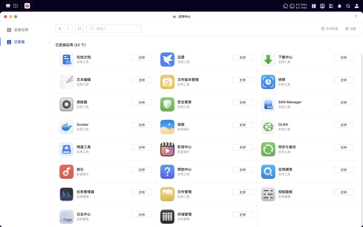 在我安装使用之后,总计共有23个应用程序。对于一款基于ARM架构的NAS设备而言,绿联DH4300 Plus在原生应用的支持上可以说相当全面,功能都很实用。