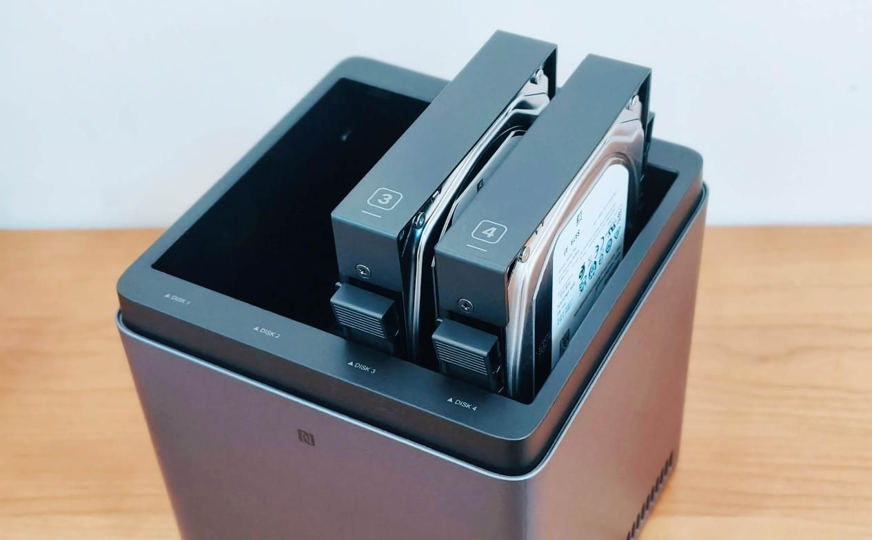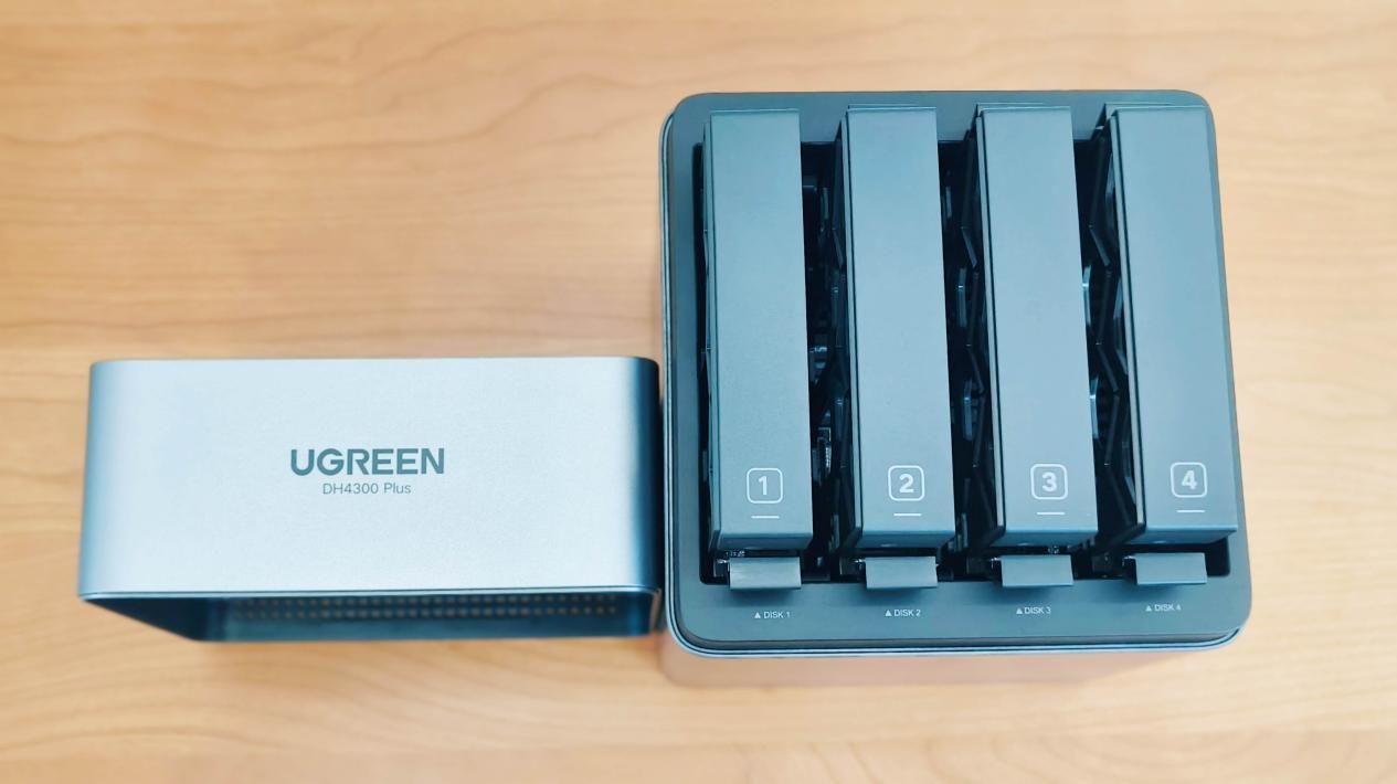 这次四海哥我使用绿联DH4300 Plus,只装了两块硬盘,为了方便展示,特意安装在了3号位和4号位的硬盘仓位上。
