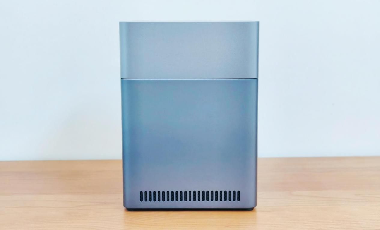 绿联DH4300 Plus NAS在机身左右两侧的底部均设计了一排栅格开孔,旨在提升内部散热效率,实现空气流通,有效交换内外热量,保障设备稳定运行。