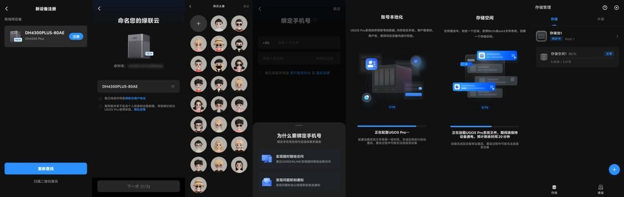 当绿联DH4300 Plus完成通电并接入网络后,用户可通过手机APP或者NFC一贴即链轻松搜索到已连接的NAS设备。随后,可根据个人喜好对设备名称进行自定义修改,同时支持更换系统预设的头像,上传自己喜爱的图片作为设备标识。为了提升使用的便捷性,官方建议将设备绑定UGREENlink账号,这样一来,即使身处外网环境,也能轻松访问NAS中的数据。