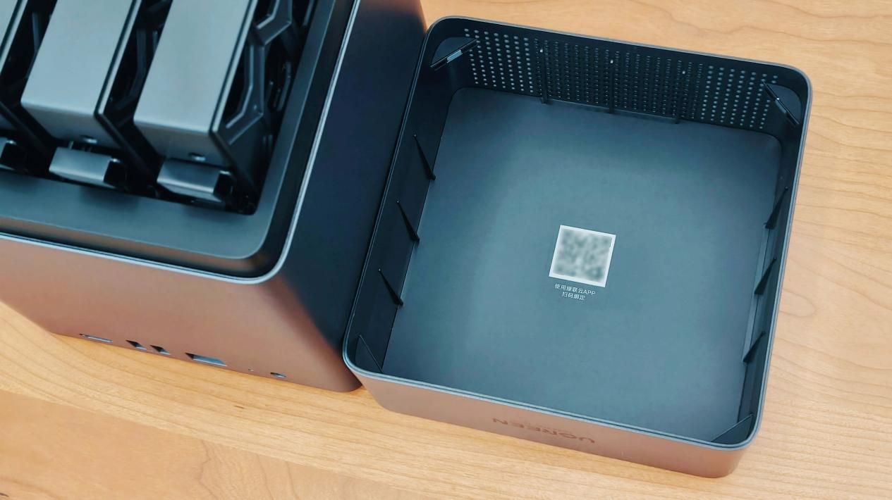 在NAS机身正面的下方设有一处NFC感应区域,只要你的手机支持NFC功能,在连接设备时便能大幅简化操作流程,只需轻轻一碰,即可自动跳转至对应APP,迅速完成与NAS的连接。