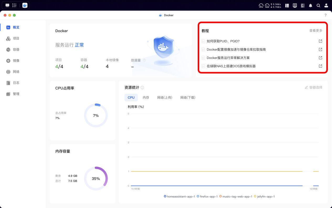 应用中心提供的软件种类相对丰富,不过部分应用程序需要在完成Docker部署之后方可进行安装。