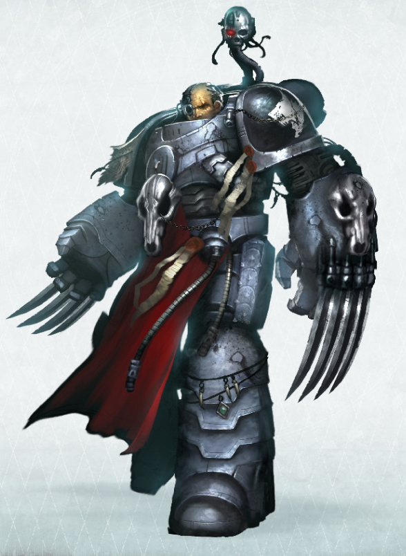 精工終結者裝甲 - 洛根·格里姆納身披一套遠古精工鍛造的終結者裝甲,此乃太空野狼戰團的珍貴聖物。