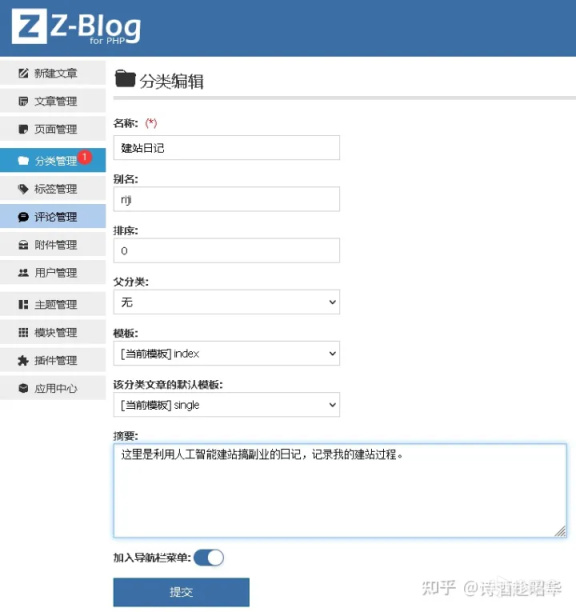 如果你想把分類加到網站導航欄目,一定勾選加入菜單。