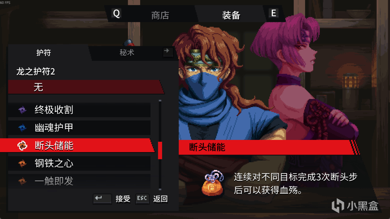 本作还有两个重要机制,一个是断头步,一个是血殇。断头步类似于茶杯头的“格挡”,在空中按下跳跃键即可触发,集无效化敌人攻击、使角色能跳到更高更远处、对敌人造成伤害和回复忍气等多种功能为一体。