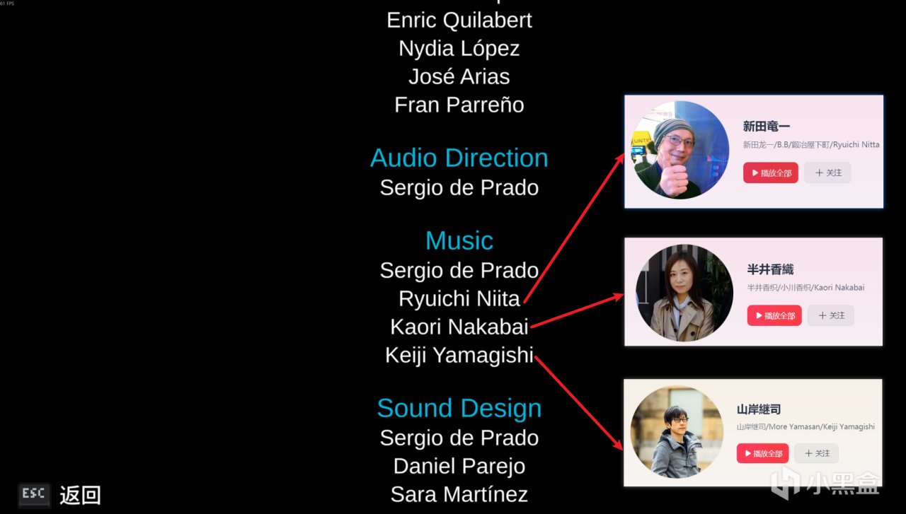 在游戏结束播放的制作人员名单中,我们可以看到Music一栏下有三个老熟人:山岸继司、新田龙一和半井香织。