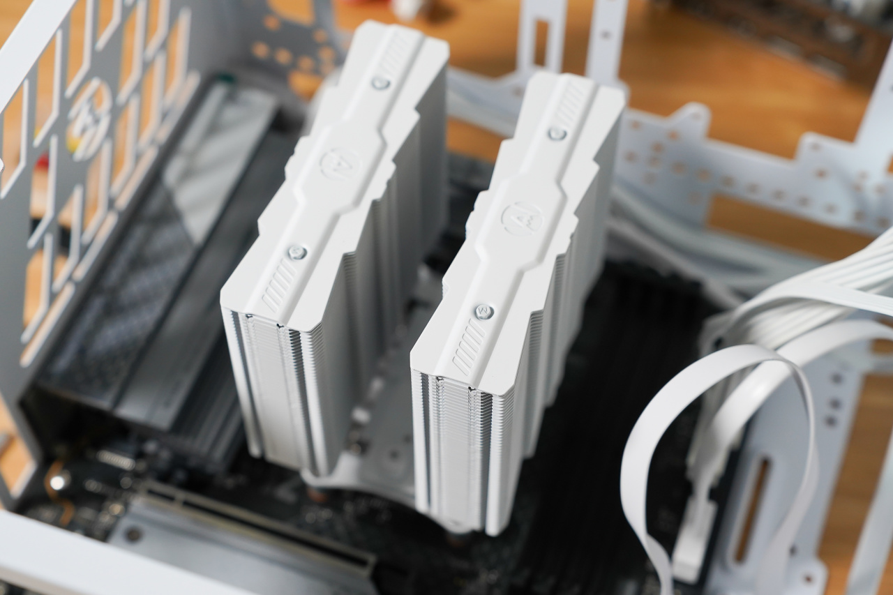 這是一款單風扇的雙塔風冷散熱器,當然你也可以自己加成雙風扇。KK135的意思就是它的散熱器高度是135mm,而這款機箱的支持CPU散熱器最高的高度是162mm,所以綽綽有餘。鰭片是穿fin和扣fin工藝,確保熱量迅速傳導。
