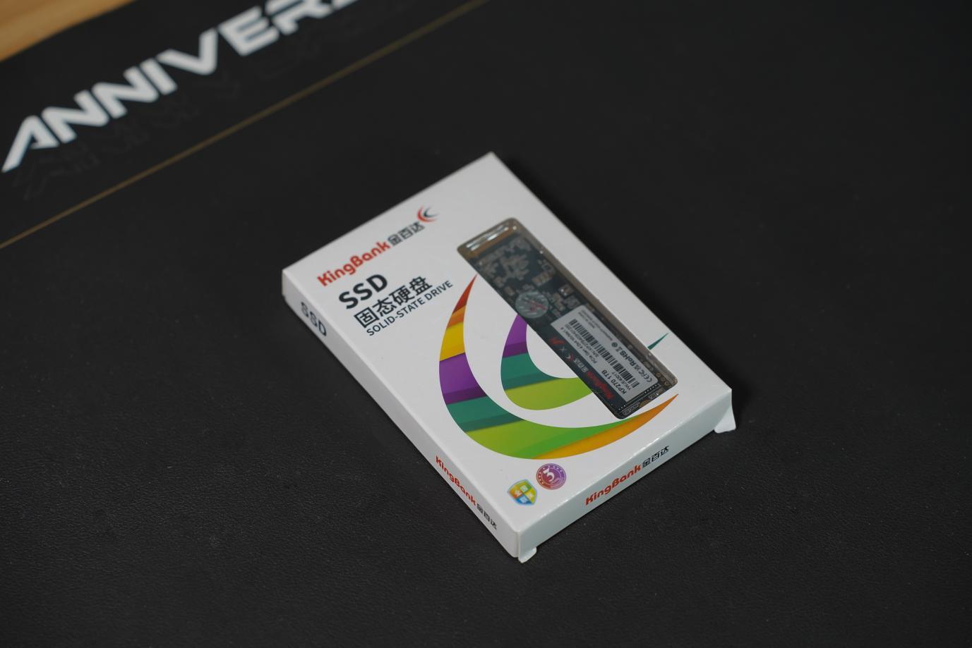 硬盤要預先裝好,使用的是KingBank金百達的M.2 NVMe SSD固態硬盤,包裝盒還是金百達熟悉的風格,比較清新,可以看見裏面。