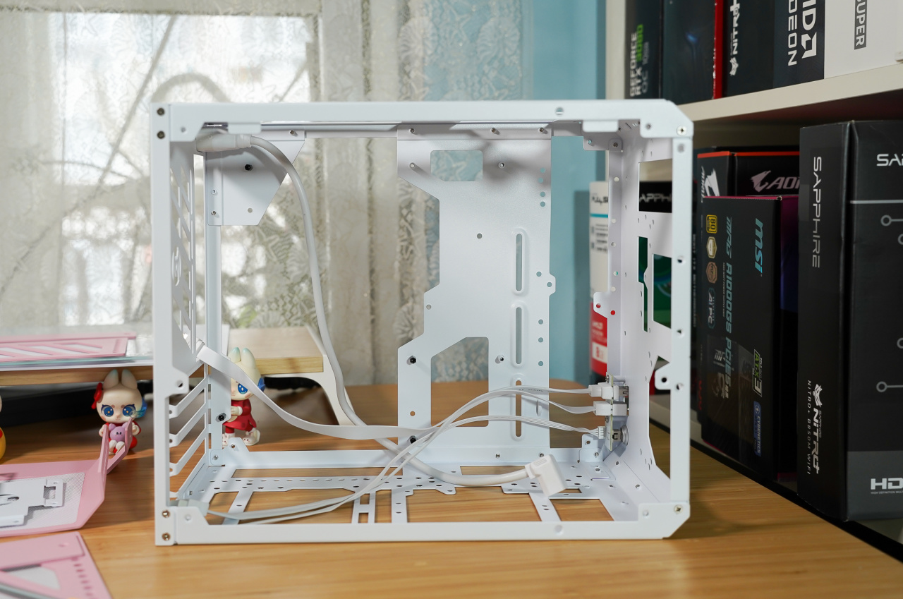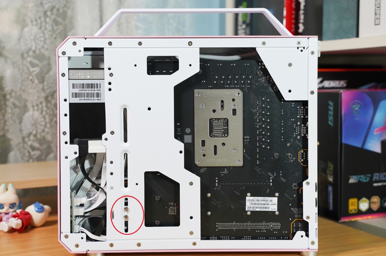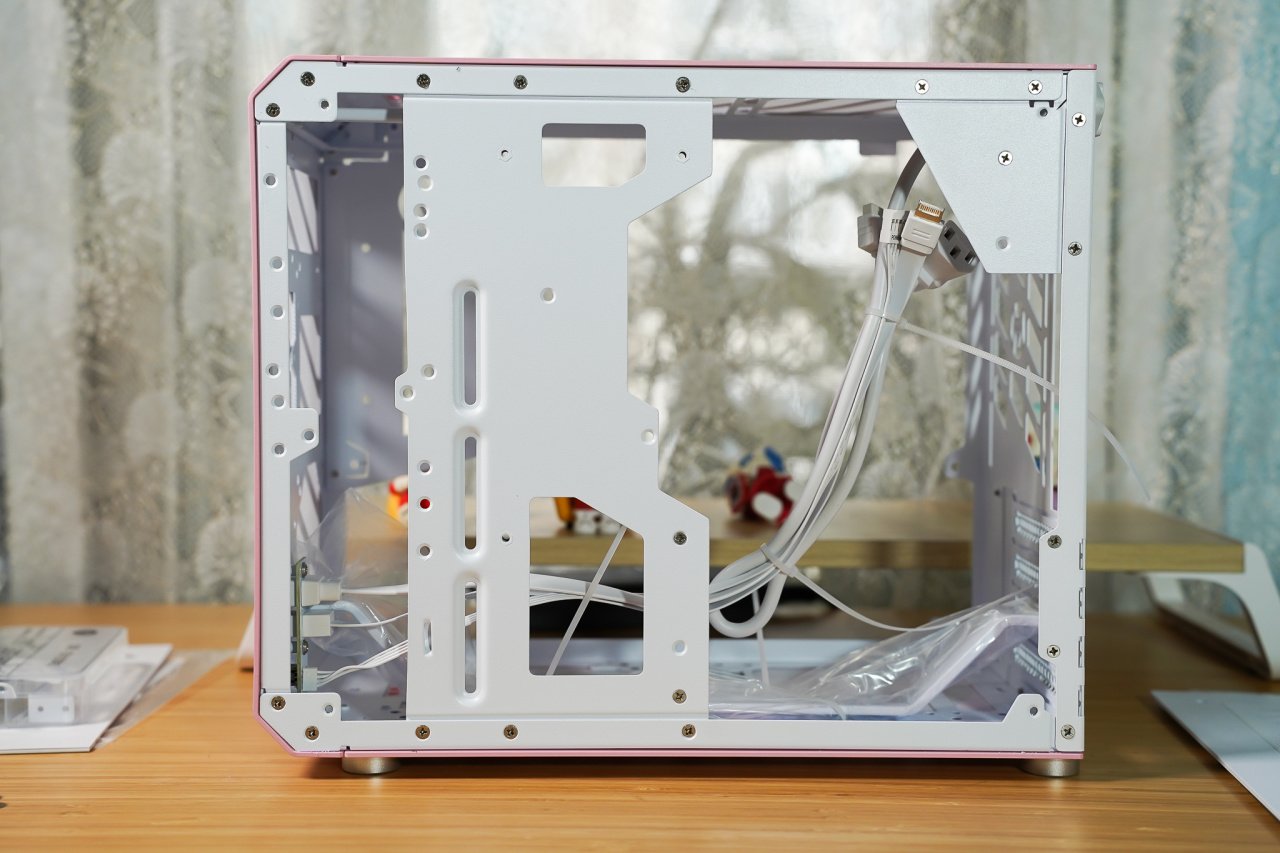 將側板和側透玻璃取下,先來看看右側的框架,同邊框對齊,所以這裏是沒有背板空間的。