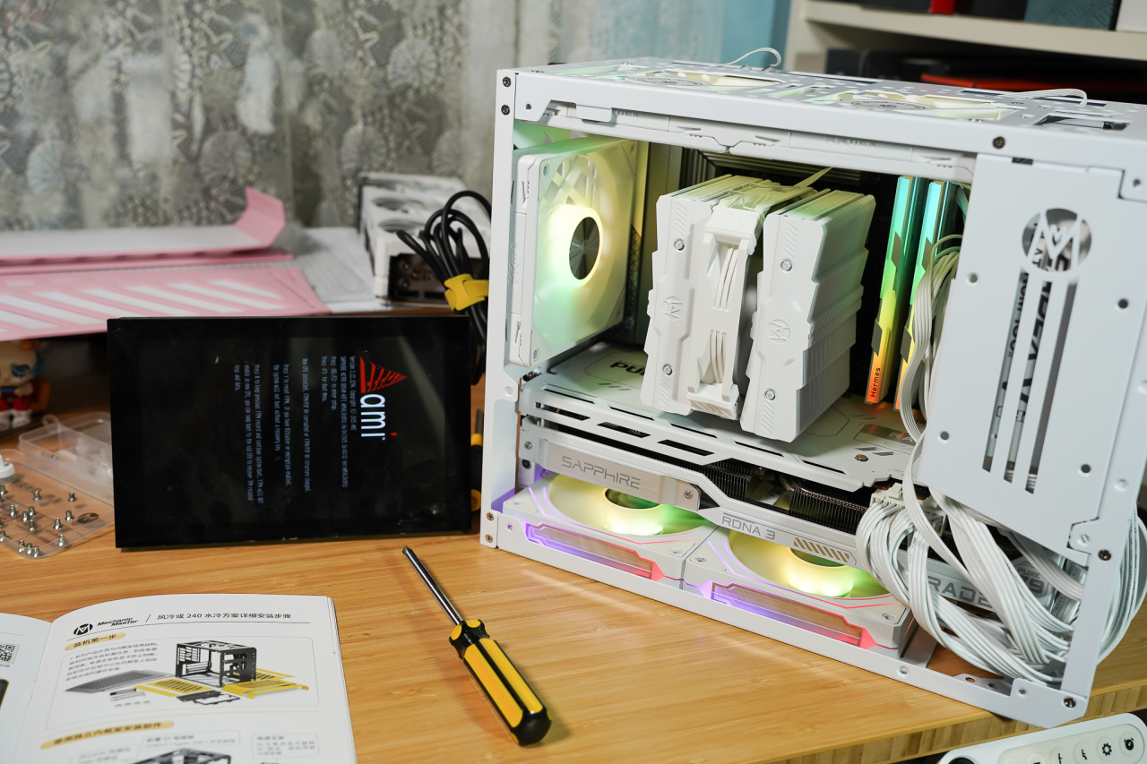 小機箱的安裝的確是比較複雜的,嚴格來說,如果使用小機箱,預先的規劃設計很重要,比如用ATX還是SFX電源,ATX電源的尺寸、顯卡的尺寸,3.5英寸硬盤、2.5英寸硬盤的數量、計劃使用風扇的數量和規格,建議最好問下客服,官網下個說明書看看,先規劃好。