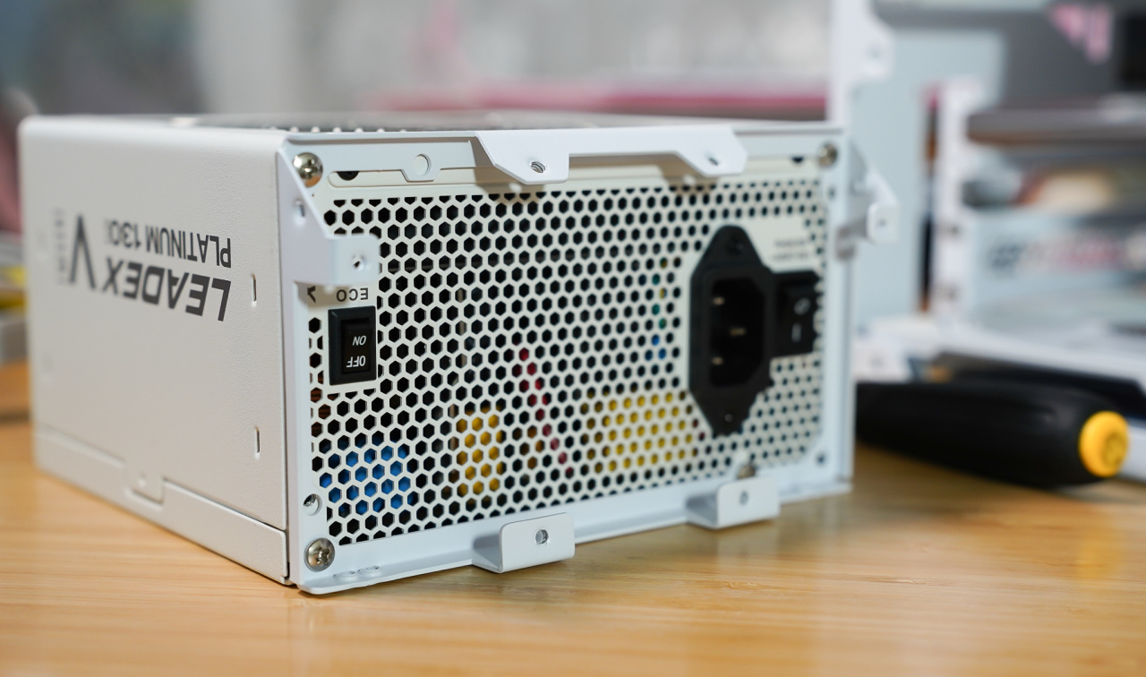 這是一款振華的電源,LEADX V,850W的輸出功率,需要將電源支架先接好在電源上,然後也將相應的線先接好。