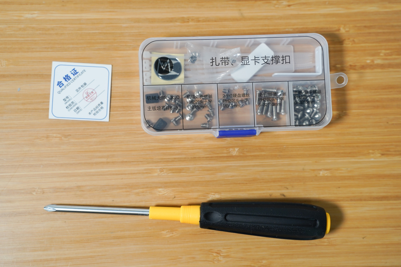 一個配件盒和附送的螺絲刀,配件盒上有印刷盒子內的螺絲用途,說一下,這款螺絲刀的確蠻好用的。