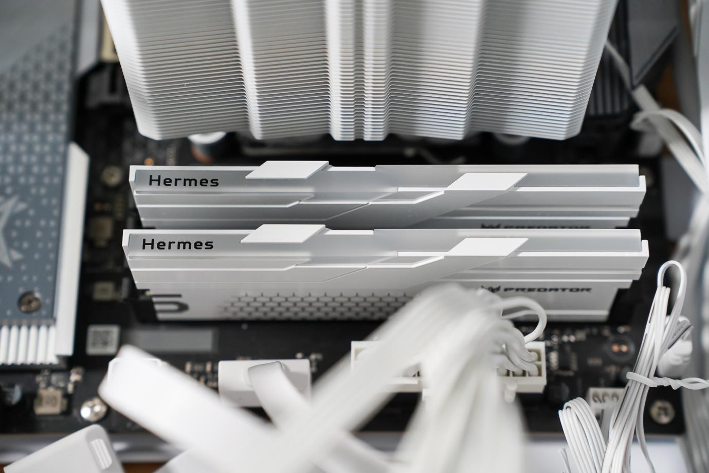 內存是宏碁掠奪者Hermes DDR5內存,8000MHz頻率。這款內存它採用了海力士特挑顆粒,CL36超低時序。相對市面上其他同頻率產品,僅需更低電壓就可以穩定運行,所以說具有更好的超頻體質和超頻餘量。