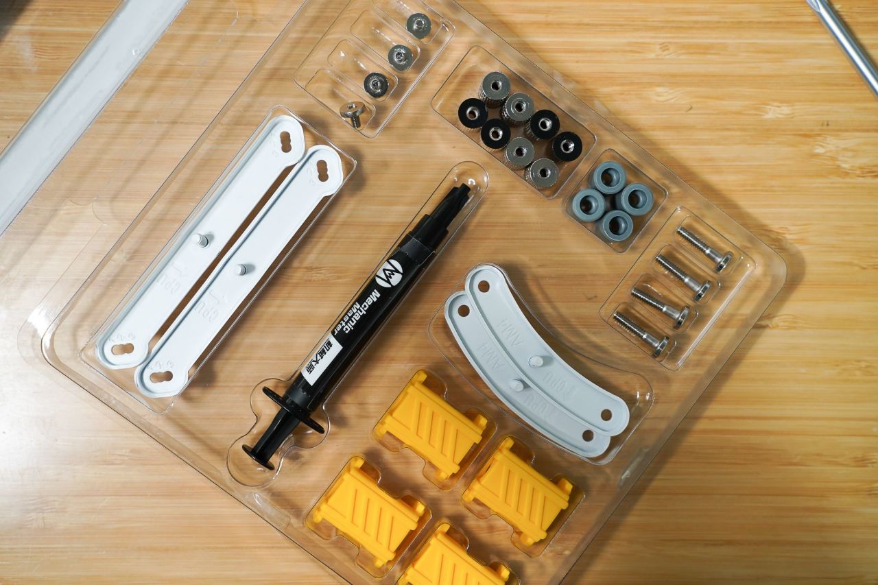 這款散熱器支持AMD 和Intel平臺,AM4/AM5以及 LGA 115X/1200/1700,當然也包括現在的1851。它有獨立的配件盒,透明的,裏面的零配件擺放整齊,使用舒適。