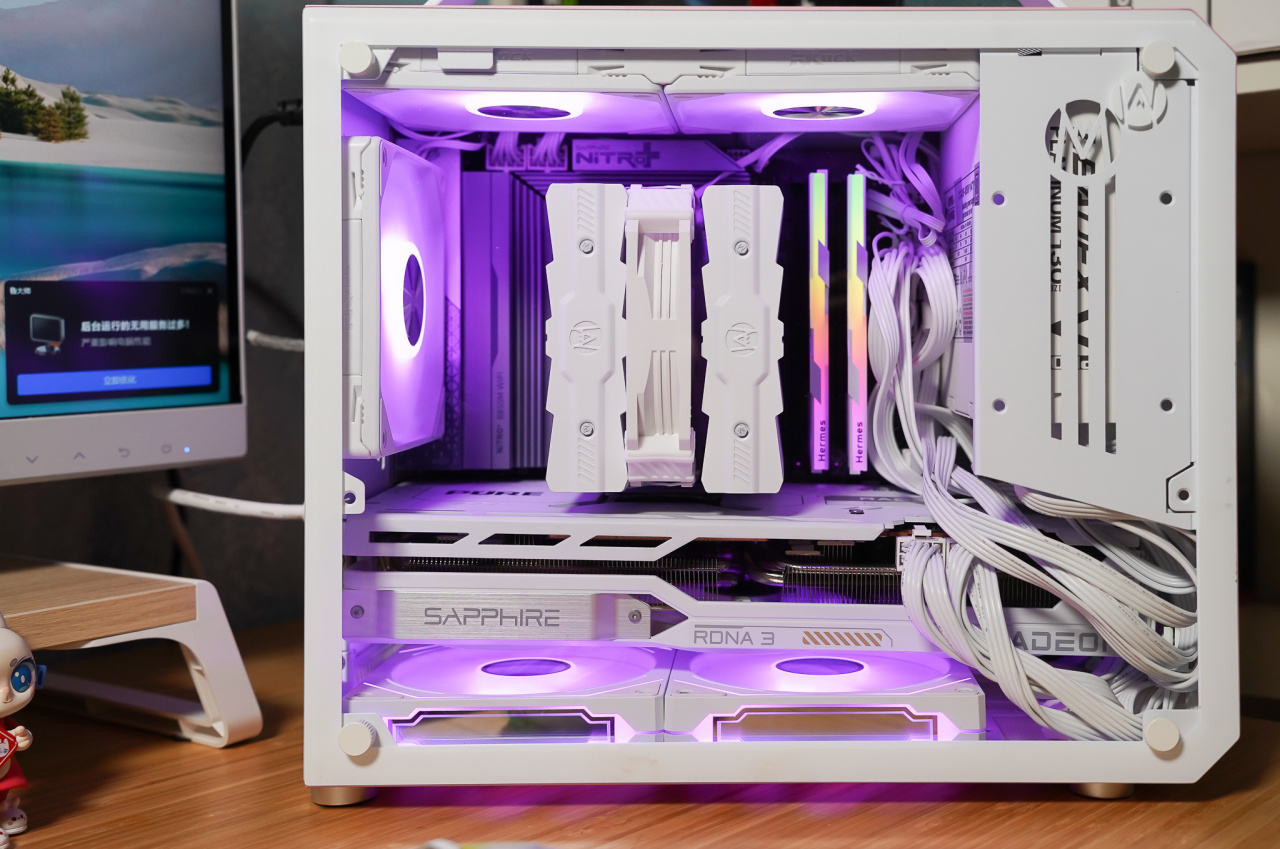 顯卡是藍寶石的7900XT 極地版,它的尺寸是長x寬x高 :313(L)x133,75(B)x52.67(H) mm,在它的允許範圍之內。
