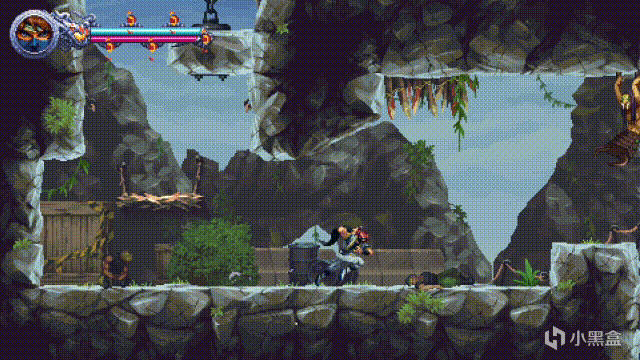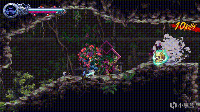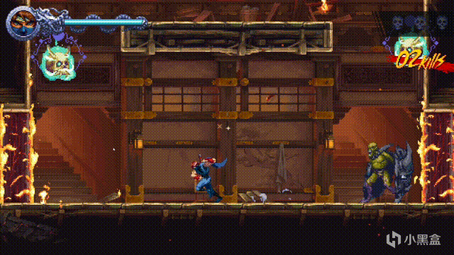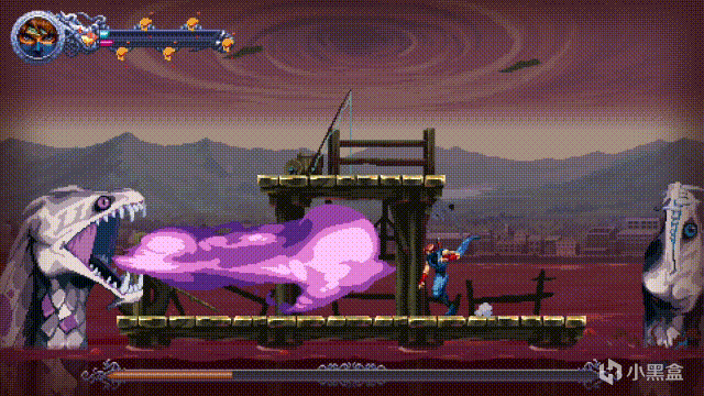 是的,你沒看錯,就算是到了2D忍龍的世界,The Game Kitchen依舊忘不了他們那“可愛”的跳跳樂。甚至,因爲賢二和九守兩名角色相比《神之褻瀆》的角色有着更強的機動性,跳跳樂的難度也跟着變本加厲起來了。