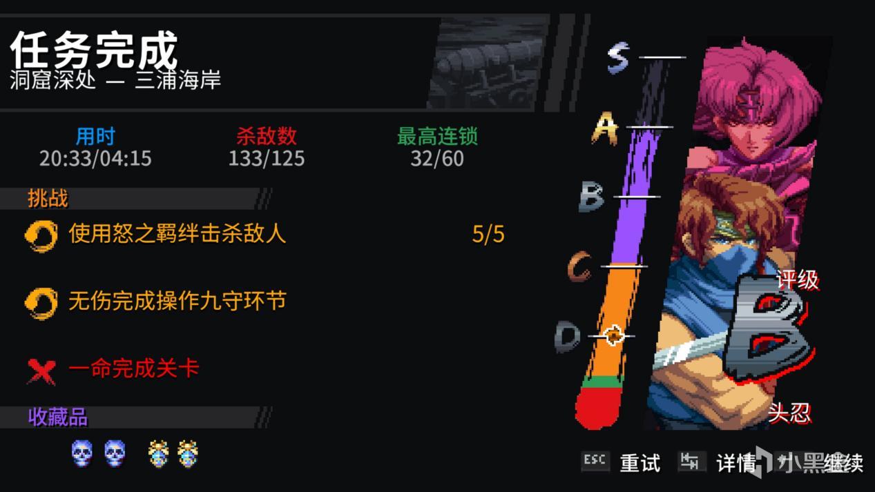 而且,和3D忍龍類似地,初次通關普通和困難難度都能爲賢二和九守解鎖不同的皮膚,因此,如果對角色感興趣,或是打完一週目後感覺意猶未盡的話,還是比較建議挑戰一下的。